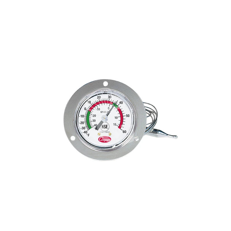 Termometro per celle da incasso provvisto di corda di lunghezza 2 metri, bulbo 100 mm e sonda di lettura istantanea.