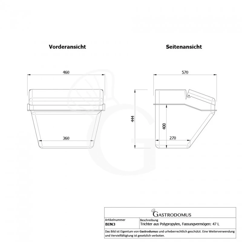 Tramoggia in polipropilene da scaffale capacità 47 L – dimensioni L 570 mm x P 460 mm x H 444 mm