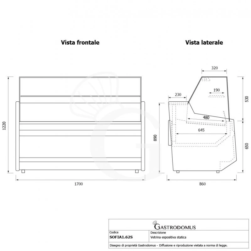 860 mm - Altezza vetrina espositiva