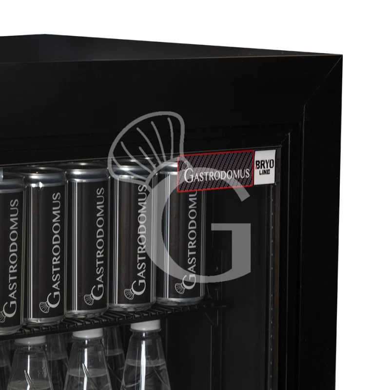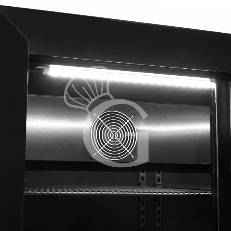 L’espositore refrigerato per bibite ha 2 porte scorrevoli e refrigerazione ventilata. La porta non è reversibile.