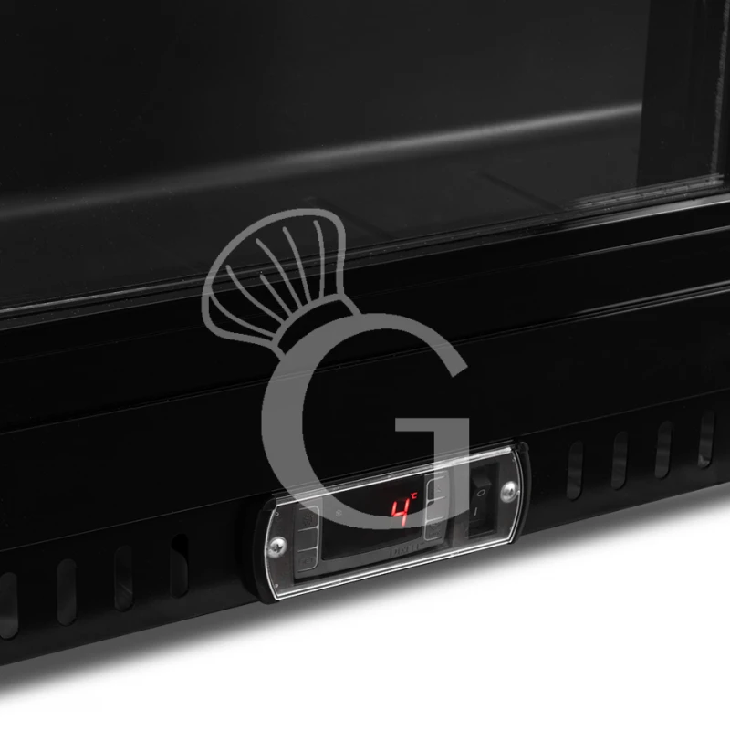 L’espositore refrigerato per bibite ha 3 porte scorrevoli e refrigerazione ventilata. La porta non è reversibile.