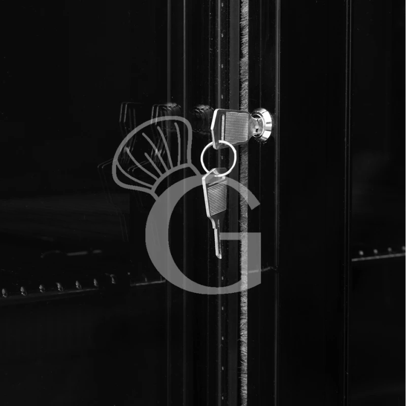 6 ripiani, luce LED, 4 piedini regolabili, serratura