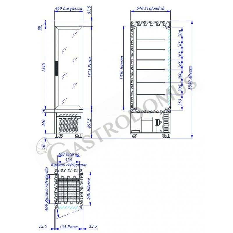 L’allestimento interno è composto da 6 ripiani refrigerati fissi di dimensioni 326 mm x 469 mm.