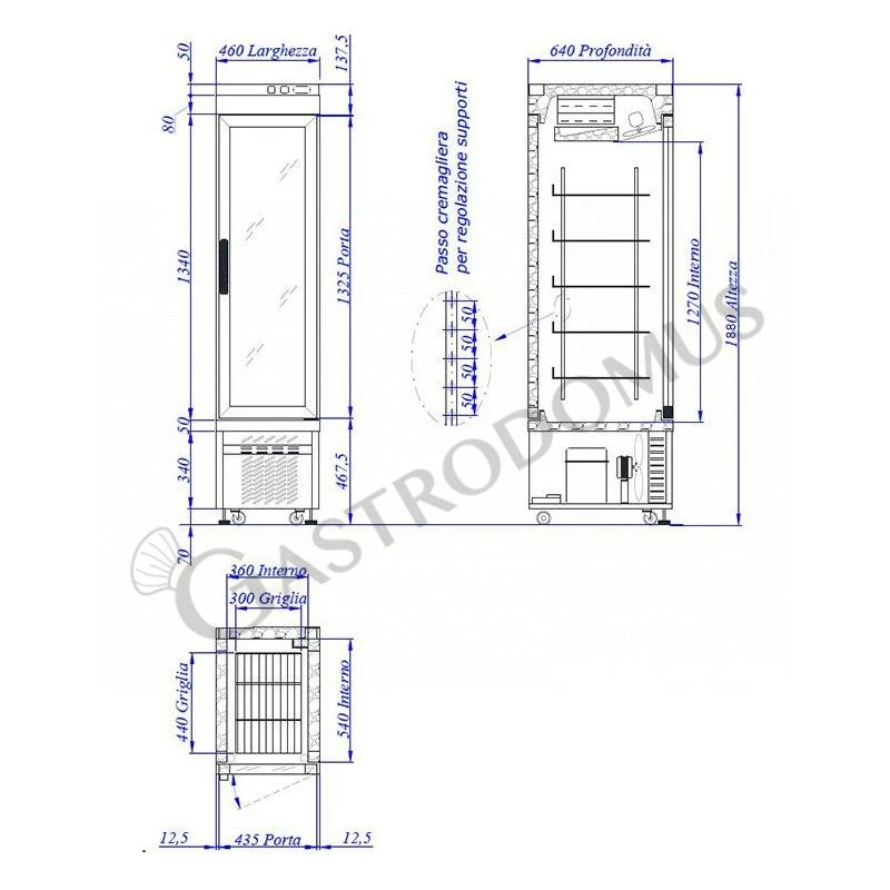 L 460 mm x P 640 mm x H 1880 mm - Dimensioni interne