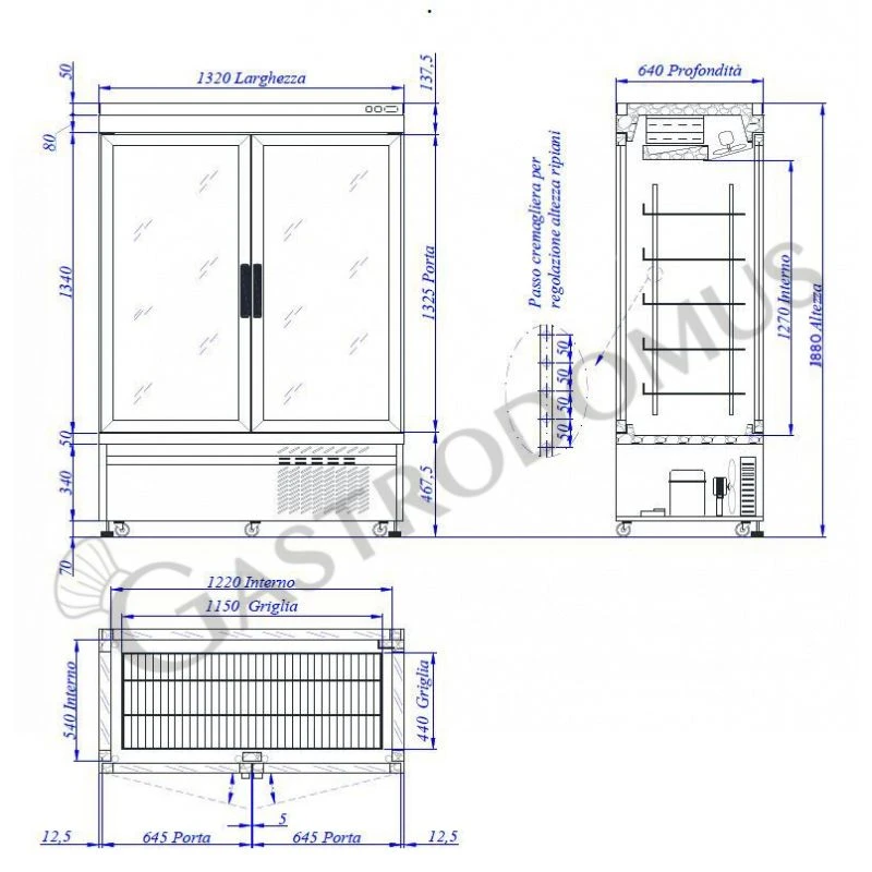 L 1320 mm x P 640 mm x H 1880 mm - Dimensioni interne