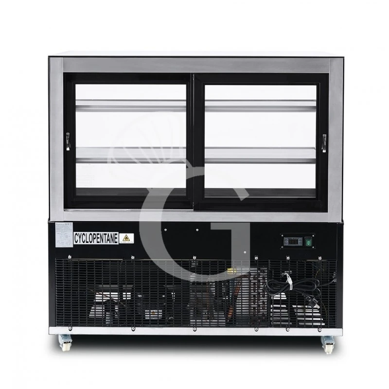 La struttura esterna è in acciaio con porte scorrevoli in vetro non invertibili. Le vetrine hanno doppi vetri su tutti e 4 i lati e il pannello frontale è facilmente accessibile per permettere una perfetta pulizia del condensatore.