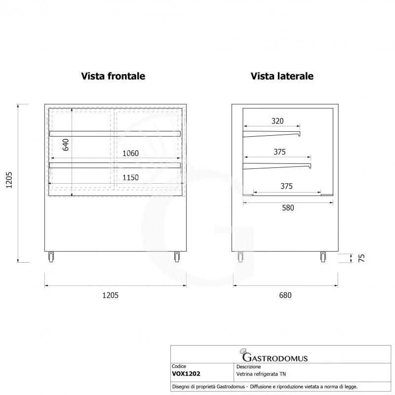 L 1205 mm x P 680 mm x H 1205 mm - Dimensioni interne