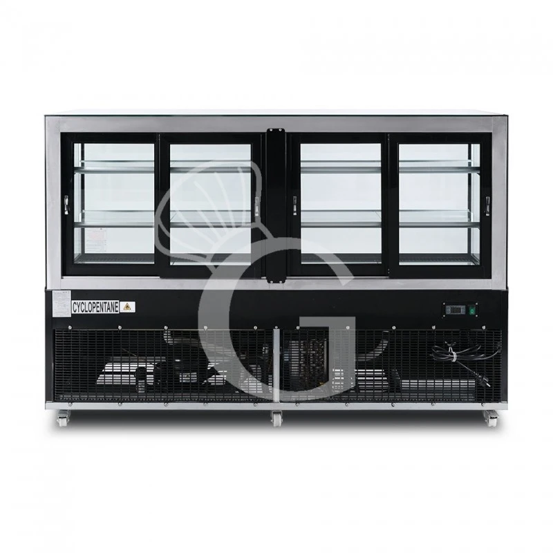 La struttura esterna è in acciaio con porte scorrevoli in vetro non invertibili. Le vetrine hanno doppi vetri su tutti e 4 i lati e il pannello frontale è facilmente accessibile per permettere una perfetta pulizia del condensatore.