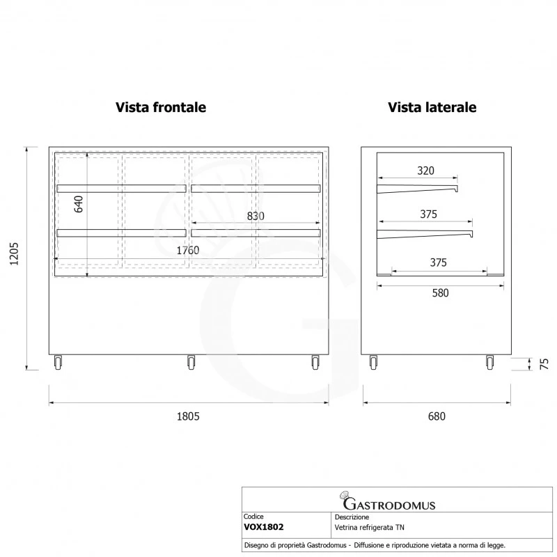 L 1760 mm x P 580 mm x H 640 mm - Lunghezza vetrina espositiva